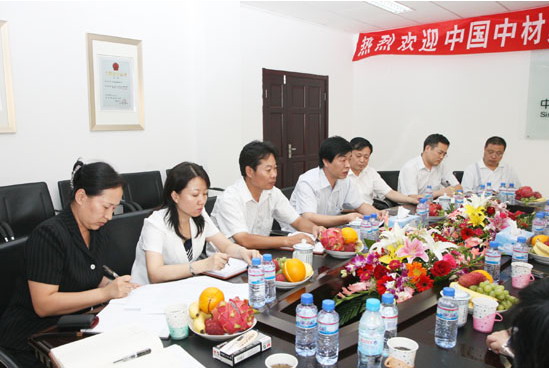 譚總一行是在參加完當(dāng)天上午中材礦山建設(shè)有限公司揭牌儀式后來到中材節(jié)能視察指導(dǎo)工作的。