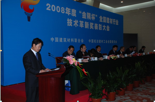 12月21日,2008年度“金隅杯”全國建材行業(yè)技術(shù)革新獎(jiǎng)表彰大會(huì)在北京市人民大會(huì)堂隆重召開,會(huì)議公布了107個(gè)獲獎(jiǎng)項(xiàng)目名單并向獲獎(jiǎng)項(xiàng)目頒發(fā)了獎(jiǎng)牌。