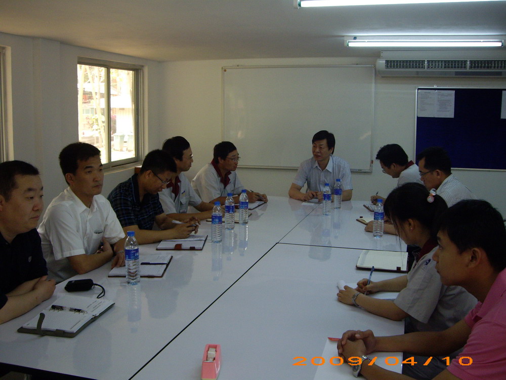 4月,泰國傳統(tǒng)的頌干節(jié)(相當(dāng)于中國的春節(jié))到來前期,張奇董事長率領(lǐng)市場部、技術(shù)部、采購部等部門負責(zé)人來到京都項目現(xiàn)場指導(dǎo)檢查工作。張董事長不顧旅途勞頓,清晨六點多即離開曼谷趕往項目現(xiàn)場所在地薩拉布里市郊的京都水泥廠。到達項目現(xiàn)場臨建辦公室后,隨即聽取了項目經(jīng)理吳蘇軍代表現(xiàn)場項目部所作的工作匯報。根據(jù)匯報,結(jié)合項目當(dāng)前總體執(zhí)行情況,張董事長肯定了現(xiàn)場項目部的工作,并且指出,京都項目目前的總體執(zhí)行情況符合公司制訂的計劃,要有信心依照總承包合同圓滿完成該項目。張董事長同時強調(diào)了京都項目的重要性,指示大家對后面的工作要盡早作出計劃,對各種可能出現(xiàn)的情況要做好充分準(zhǔn)備,要適應(yīng)業(yè)主的管理模式,在保證項目如期完成的同時,提高公司的項目管理水平,樹立中材節(jié)能更高的企業(yè)形象。王毅等三位部長也從各部門角度提出了具體的意見和建議。隨后,張董事長一行在項目部全體人員的陪同下查看了現(xiàn)場施工區(qū)域。