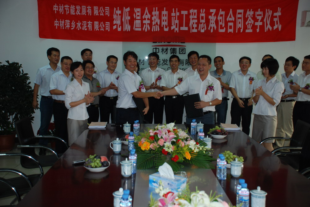 近日,中材節(jié)能與中材萍鄉(xiāng)水泥有限公司簽訂了日產2500噸新型干法熟料生產線配套4.5兆瓦余熱發(fā)電項目總承包合同。