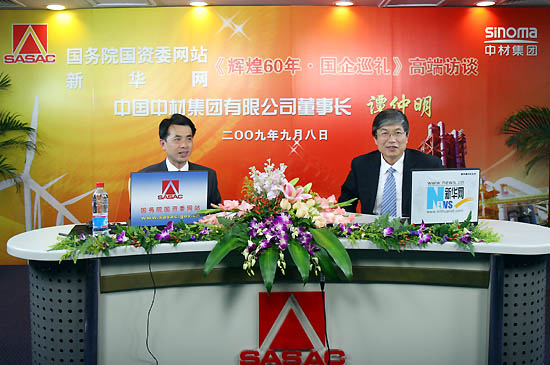 9月8日,集團(tuán)董事長譚仲明做客新華網(wǎng)《輝煌60年,國企巡禮》高端論壇,與廣大網(wǎng)友“面對面”,就中材集團(tuán)的跨越式發(fā)展等一系列熱點(diǎn)問題進(jìn)行在線交流。