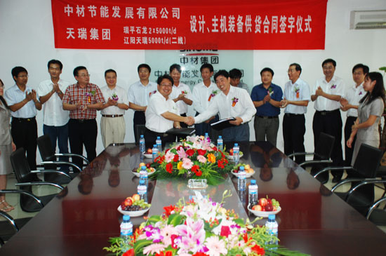 9月4日,中材節(jié)能發(fā)展有限公司與河南天瑞集團水泥公司在天津簽訂了平頂山瑞平石龍水泥公司(2×5000t/d)和遼陽天瑞水泥公司二線(5000t/d)配套的余熱發(fā)電工程的設(shè)計和主機裝備供貨合同。