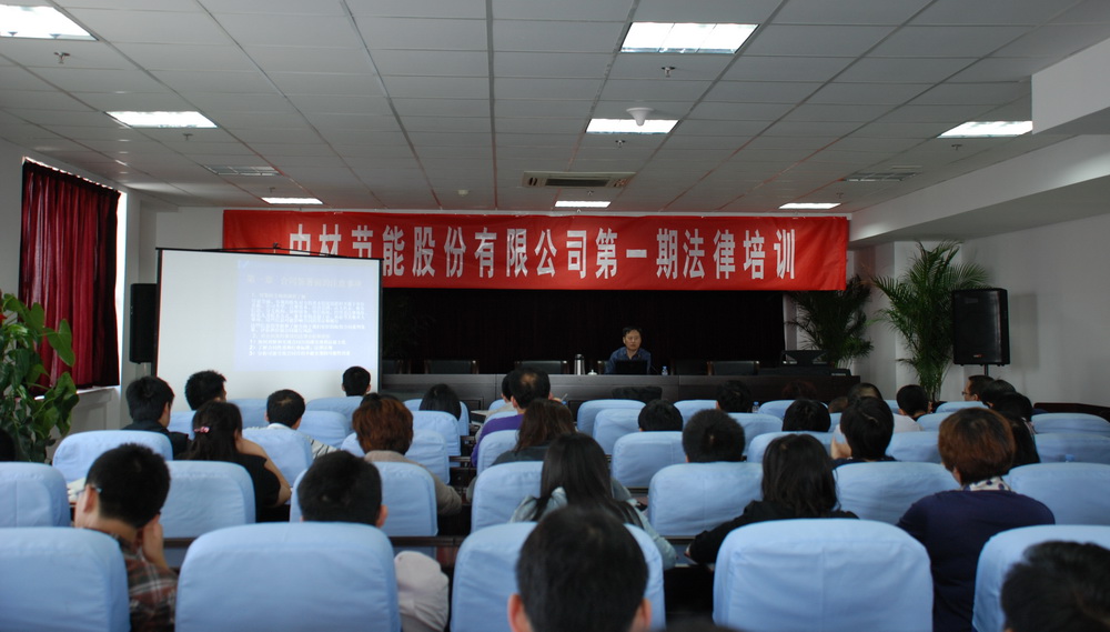 為加強(qiáng)公司管理水平,提高員工風(fēng)險(xiǎn)防范意識(shí),中材節(jié)能于2011年5月13日上午組織了第一期法律培訓(xùn)。公司特邀常年法律顧問花新樂律師作專題講座,公司高管、中層干部及員工共100余人參加培訓(xùn)。