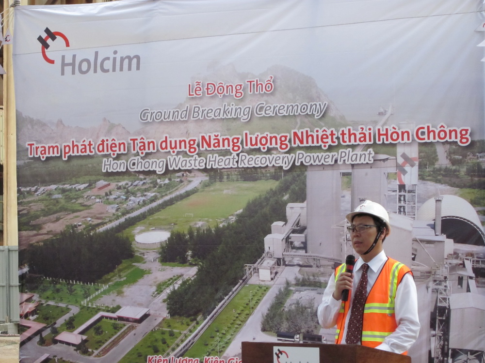 2011年5月26日,由中材節(jié)能股份有限公司總承包的越南HOLCIM余熱發(fā)電項(xiàng)目在越南Kien Giang省的Hon Chong縣舉行了開(kāi)工典禮。越南Kien Giang省省長(zhǎng)Mr. Nguy?n Tr?n Nam、越南HOLCIM技術(shù)總監(jiān)Mr.Francois Goulut、Hon Chong水泥廠廠長(zhǎng)Mr. Aridavid Lozano與中材節(jié)能股份有限公司總裁胡也明一同啟動(dòng)開(kāi)工按鈕,這是中材節(jié)能繼泰國(guó)京都萬(wàn)噸水泥生產(chǎn)線余熱發(fā)電項(xiàng)目之后與HOLCIM集團(tuán)的再次合作。