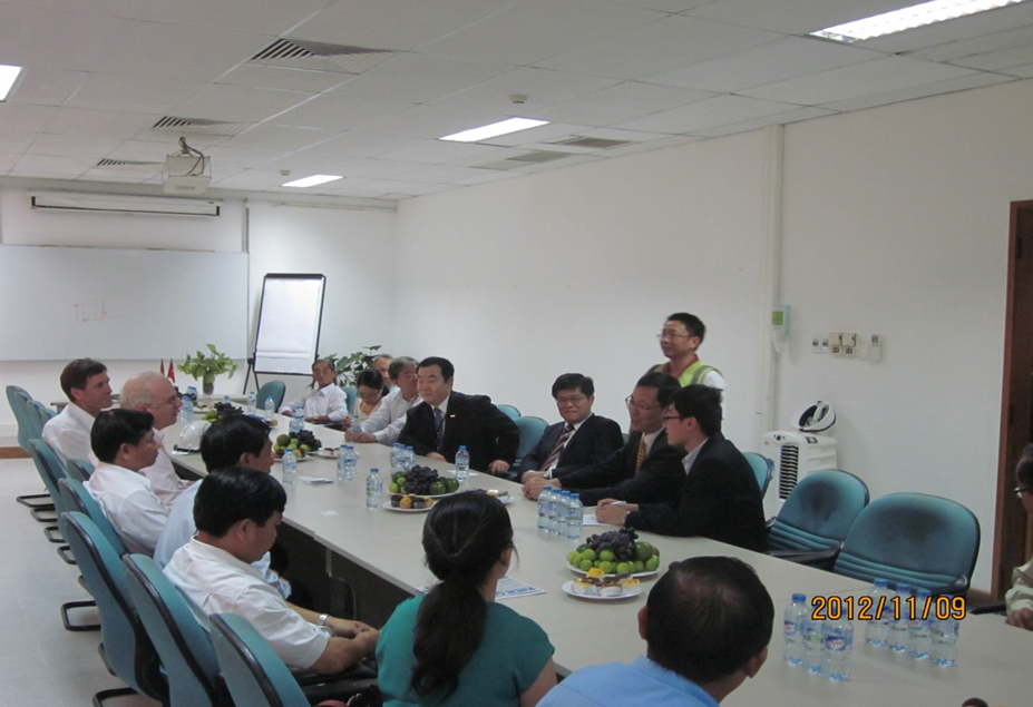 中國(guó)駐越南胡志明市總領(lǐng)事翟雷鳴先生在參加慶典期間,還特地到項(xiàng)目部駐地慰問(wèn)了余熱發(fā)電項(xiàng)目部工作人員,并一起參觀了項(xiàng)目現(xiàn)場(chǎng),聽(tīng)取了項(xiàng)目進(jìn)展情況匯報(bào)。翟雷鳴總領(lǐng)事介紹了中越兩國(guó)友好關(guān)系以及越南經(jīng)濟(jì)發(fā)展的總體情況,他說(shuō),越南國(guó)內(nèi)市場(chǎng)潛力很大,尤其在節(jié)能減排方面,希望中材集團(tuán)及所屬企業(yè)加大在越南的發(fā)展力度,與越南的實(shí)力企業(yè)保持長(zhǎng)期合作,在越南能源等多個(gè)領(lǐng)域占有一席之地,為中國(guó)企業(yè)樹(shù)立一個(gè)合作樣板。